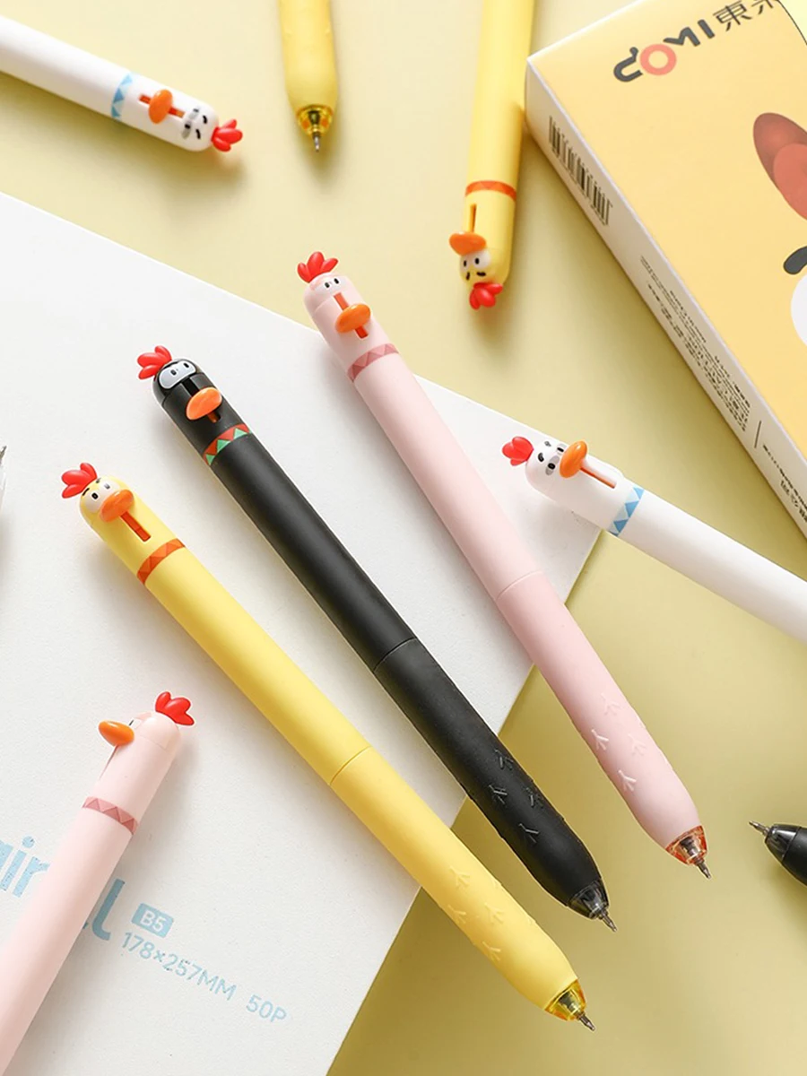 Back To School Funny Gel Pen, Chicken Click Pen, Stress Relief Toy, Fast Drying Ink For School Office black 5pcs