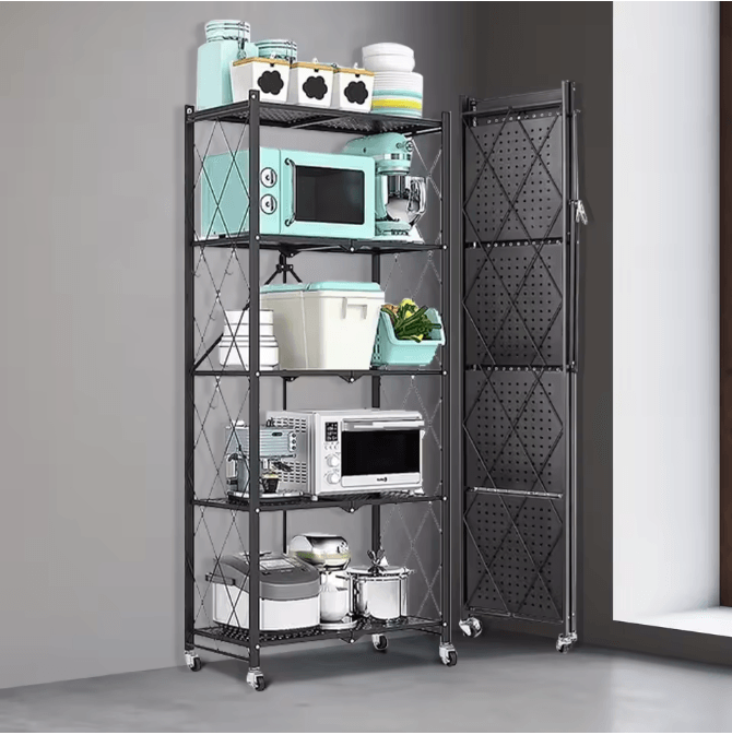 5 Tier Heavy Duty Metal Shelving Unit With Wheels Adjustable Foldable Storage Rack For Home Kitchen Office Pantry 1set